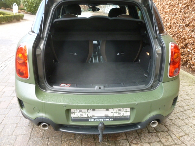4x4 Airbag Airbag passagier Airco Automatische klimaatregeling Centrale vergrendeling Electrische ruiten Laterale airbags Leder bekleding Lichtmetalen velgen Navigatiesysteem Parkeersensor Stuurbekrachtiging Xenon lichten ABS Alarm Automatische tractie controle Bagagerek Boordcomputer CD Cruise control ESP Mistlampen Startonderbreker Trekhaak Zetelverwarming Countryman exclusief Exclusieve MINI Countryman. Wrapping in Military green (3M) - Cooper SD All 4 - Uitstekende staat. Carrosserie beschermt door wrapping. Wrapping kan eraf- Kleur body is Royal grey – Zwart dak, zwarte velgen (18 duims). Interieur in Light coffee leder met witte bies (exclusief) en 4 zitplaatsen met doorlopende rail in het midden (exclusief). MINI in het groot op het dak (kan eraf)- Wagen met onderhoud en herstelling contract dus in technisch perfecte staat – Weinig km - Full, full, full option, bijkomende opties naast deze hier op de advertentie: extra verstralers, sport antenne, extra meters (koppelmeter en Gkracht meter)aan het stuur binnen in uw MINI, afneembare trekhaak – Adapter voor Iphone- Adapter voor Coyote, Dakrails, Sportstuur met alle functies, Antidiefstalbouten, Verwarmde, eleltrische buitenspiegels, Alarmsysteem met3 functies, Achterspoiler, lichtpakket (keuze van verschillende lichtkleuren in uw MINI), MINI connected (Facebook, Twitter, agenda, Webradio, enz…op het scherm in uw MINI), Runflat banden, Comforttoegang, elektrische ontdooiing van de voorruit, zonnewerend glas achteraan, zwarte koplampen, fluwelen tapijten, Opberpakket, centrale armsteun vooraan, verwarmde zetels, Harman-Kardon soundsystem, Muziekaansluiting voor smartphones, witte pinklichten, regen en licht sensor, parkeersensoren achteraan, …